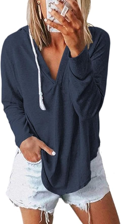 Womens Long Sleeve V Neck Hoodie Sweatshirts Lightweight Pullover Tops