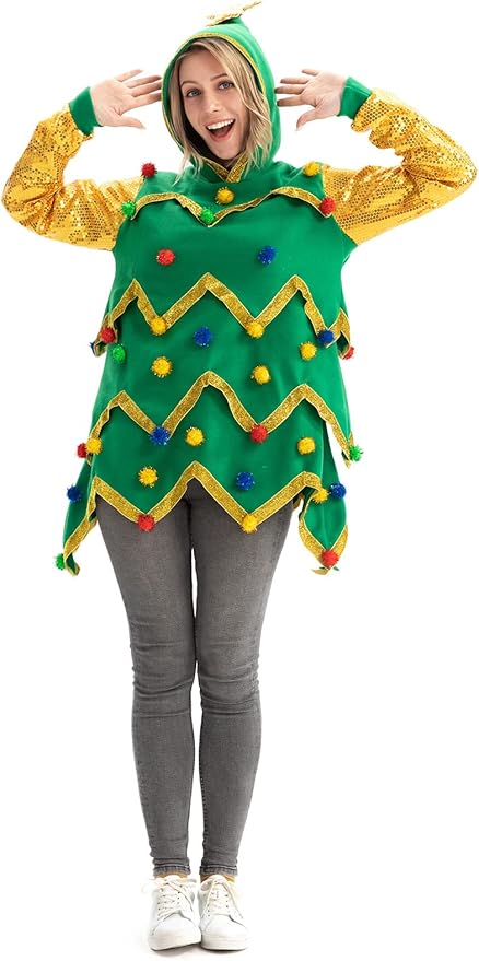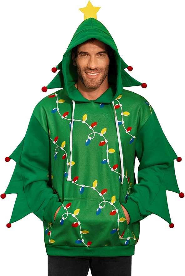 Mens Christmas Tree Hoodie Costume Lights Print Funny Ugly Hooded Sweatshirt (S-XXL)