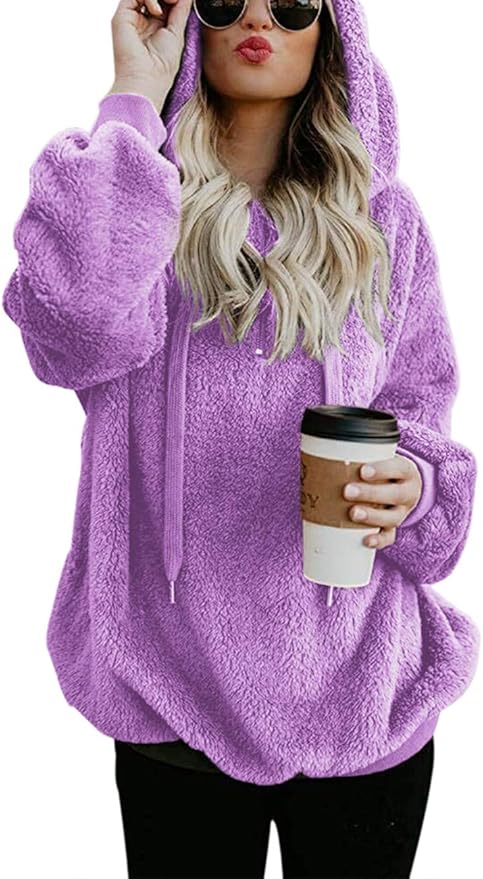 Women's Winter Fleece Sherpa Lined Hoodie Casual Warm Long Sleeve Pullover Sweatshirt